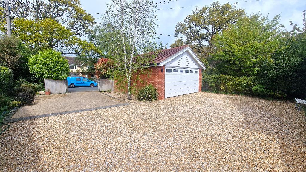 Externally, a gravelled driveway to the front provides parking for several cars and leads to both a covered carport and a large detached double garage. To the rear a good sized southerly aspect garden incorporates a decked terrace, lawned garden and an abundance of mature plants and trees.