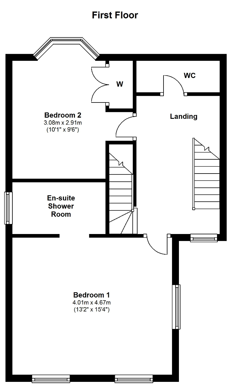 Bedroom 1 - 13' 1'' x 15' 3'' (4.01m x 4.67m) This large master bedroom is flooded with natural light from the dual aspect windows to the front and side. TV point, telephone point, radiator and fitted carpet. Open to:
