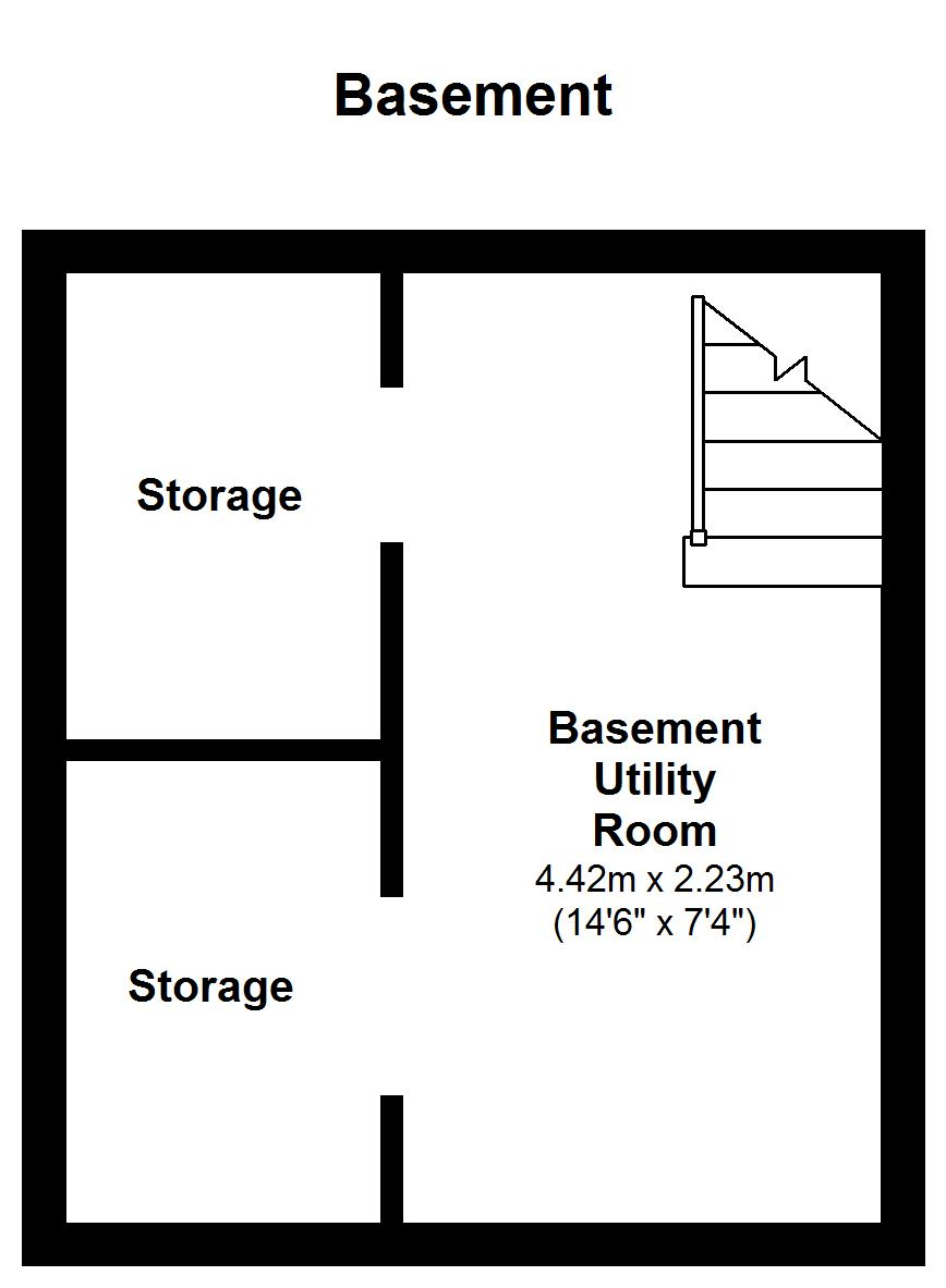 Basement/ Utility - 14' 6'' x 7' 3'' (4.42m x 2.23m) This useful basement area has power and light and plumbing for a washing machine and tumble dryer. Wall mounted gas boiler.