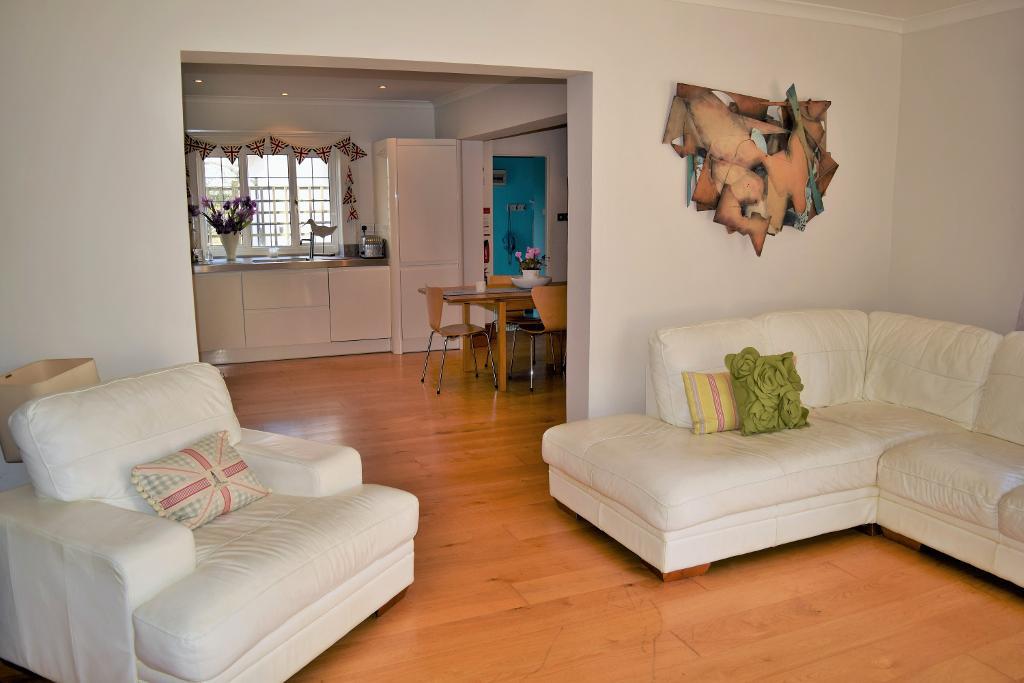 Sitting Room - 12' 0'' x 15' 3'' (3.66m x 4.65m) A naturally bright and sunny room with two pairs of French doors leading out to the garden, and open plan through to the kitchen, which makes this a very sociable space. Further double glazed window to the side. Wood flooring, TV point and radiator.