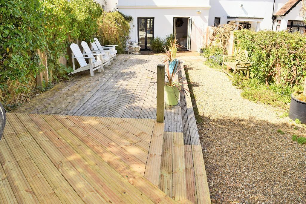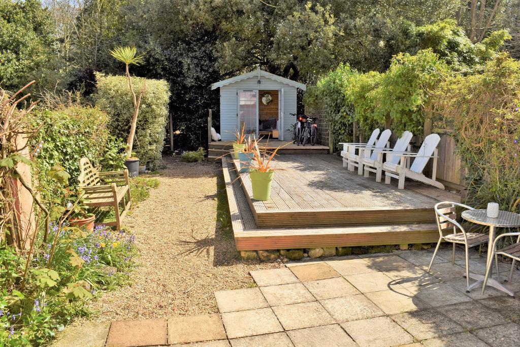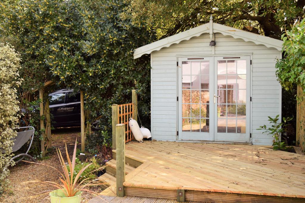 The lovely private garden has a raised decking area with wonderful views of the sea and coastline, access to the timber Summer House, and leads out to the private parking area which has gated vehicle access onto Ducie Avenue and space to incorporate boat storage.