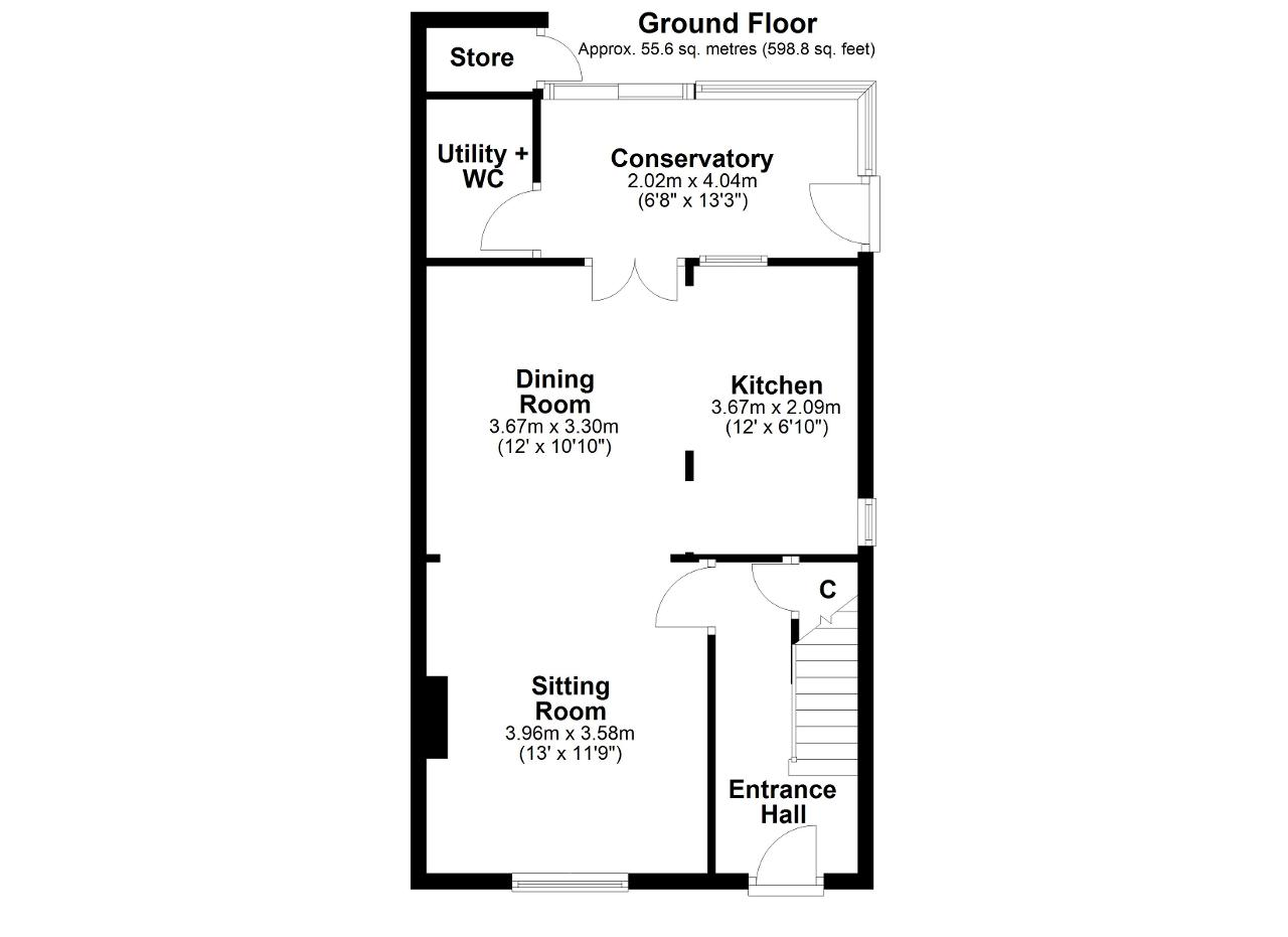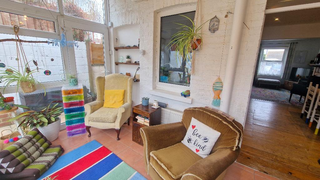 Conservatory - 6' 7'' x 13' 3'' (2.02m x 4.04m) Accessed via French doors from the dining room, this is an additional useful space which has sliding patio doors to the rear, a double glazed door to the side and double glazed windows to the side and rear. Tiled flooring. Door to: