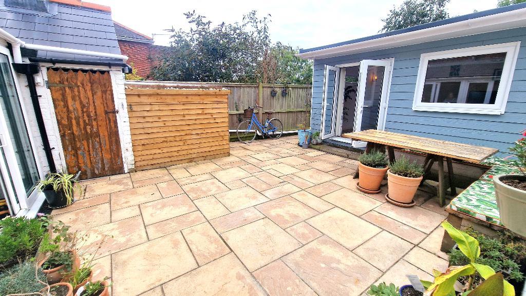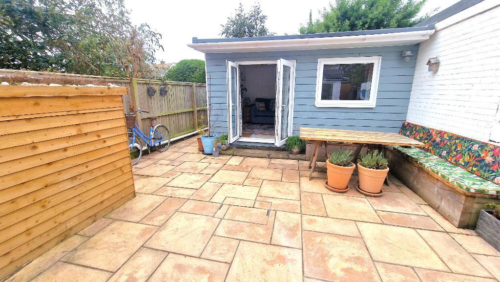Outside - Access from the conservatory leads out to an enclosed rear garden which has been paved for ease of maintenance and incorporates a built in seating area. Wooden bike store, wooden lean-to storage shed with front and back access, and former outside WC which is now used as a store room. Gated rear access out onto Daishs Lane. Outside tap.