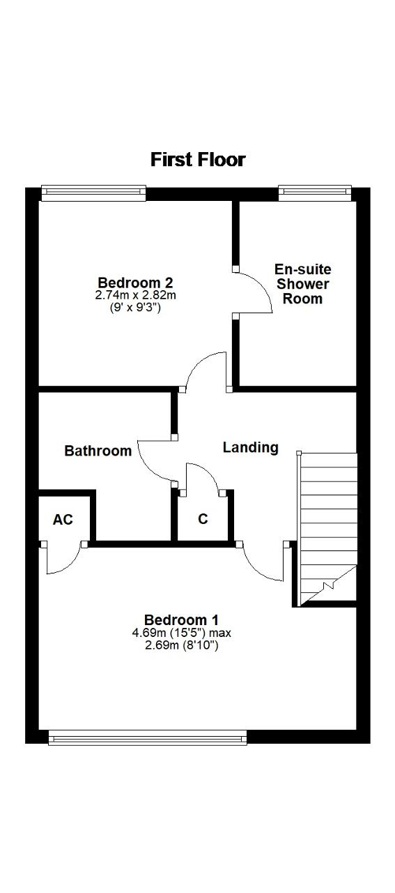 Bedroom 1 - 15' 4'' x 8' 9'' (4.69m x 2.69m) A double bedroom with a large double glazed window to the front. Over stairs storage cupboard and airing cupboard housing the gas boiler. TV point, radiator and fitted carpet.
