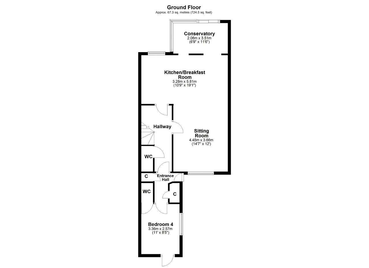 Conservatory - 6' 9'' x 11' 6'' (2.06m x 3.51m) Double glazed windows to the back and side, with patio doors leading into the garden. Glass roof and wooden flooring.