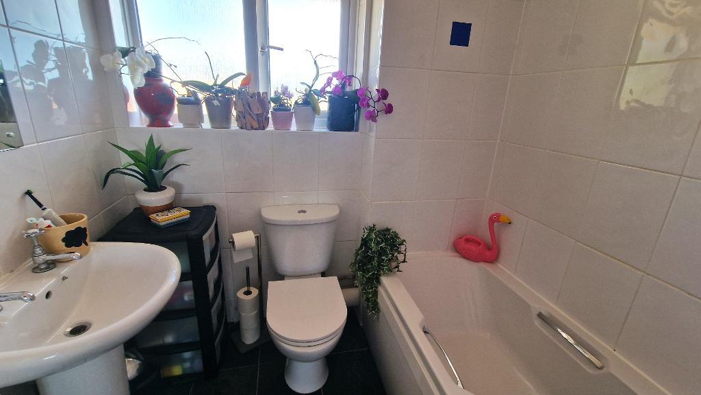 Bathroom - Fitted with panelled bath, a wash basin and a WC. Obscured double glazed window to the front. Radiator, extractor fan, tiled walls and floors.