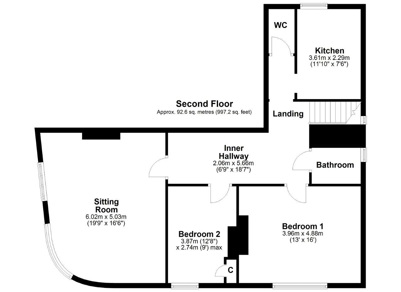 Bedroom 2 - 12' 8'' x 8' 11'' (3.87m x 2.74m) A small double bedroom with high ceilings. Built in cupboard. Radiator. Double glazed window to the front.