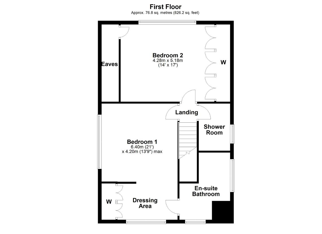 Bedroom 1 - 20' 11'' x 13' 8'' (6.4m x 4.2m) A large and naturally bright double bedroom which incorporates a dressing area with built in cupboards. Double glazed windows to the front and side. Radiator and fitted carpet. Door to:
