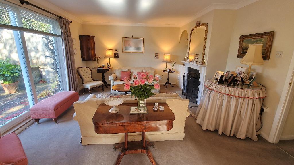 Sitting Room - 13' 11'' x 15' 11'' (4.26m x 4.87m) A naturally bright rear aspect room which has an open fire set on a stone hearth with a wooden surround. Double glazed patio doors to the rear giving access to the garden. Radiators and fitted carpet. French doors to: