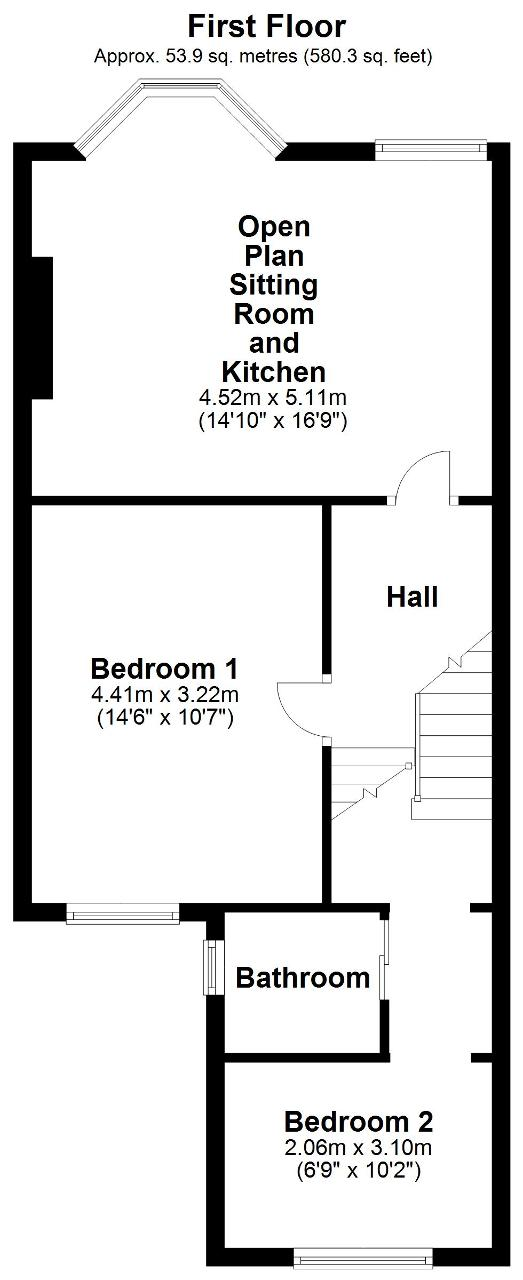 A private door from the entrance hall has stairs to the first floor which leads to the thoughtfully arranged accommodation. This comprises hallway, an open plan sitting room and kitchen to the front overlooking the village green, 2 double bedrooms with views of Bembridge Harbour from the rear bedroom, and a family bathroom. A loft room is accessed via fixed wooden steps from the hall, and provides a useful additional space for an office, studio, hobby room or as an overflow bedroom. From here there are lovely views across to Bembridge Harbour and the local countryside.