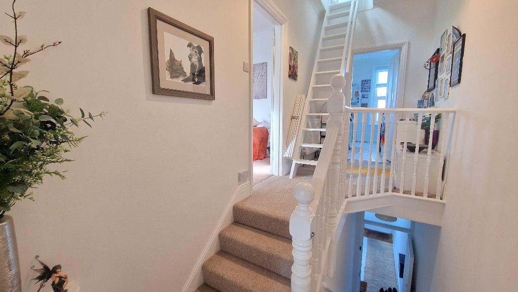 Hallway - With fitted carpet, fixed wooden steps to the loft room and accommodation off: