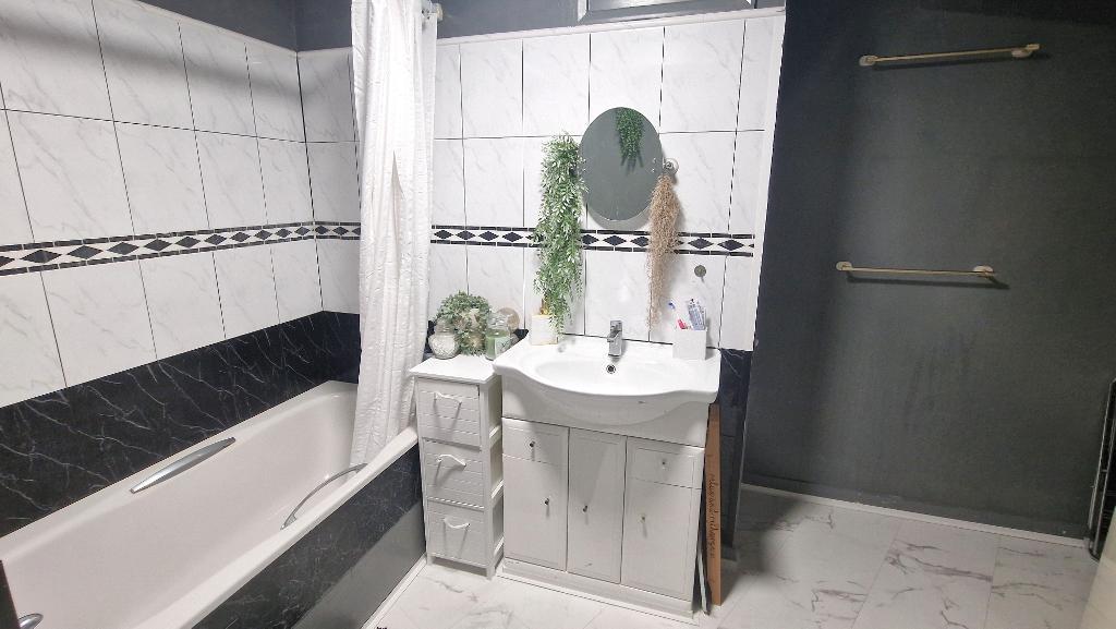 Bathroom - A spacious bathroom which is fitted with a panelled bath with a shower over, a wash basin set in a vanity unit and a WC. Built in storge cupboard and airing cupboard housing the hot water cylinder. Night storage heater and vinyl flooring.