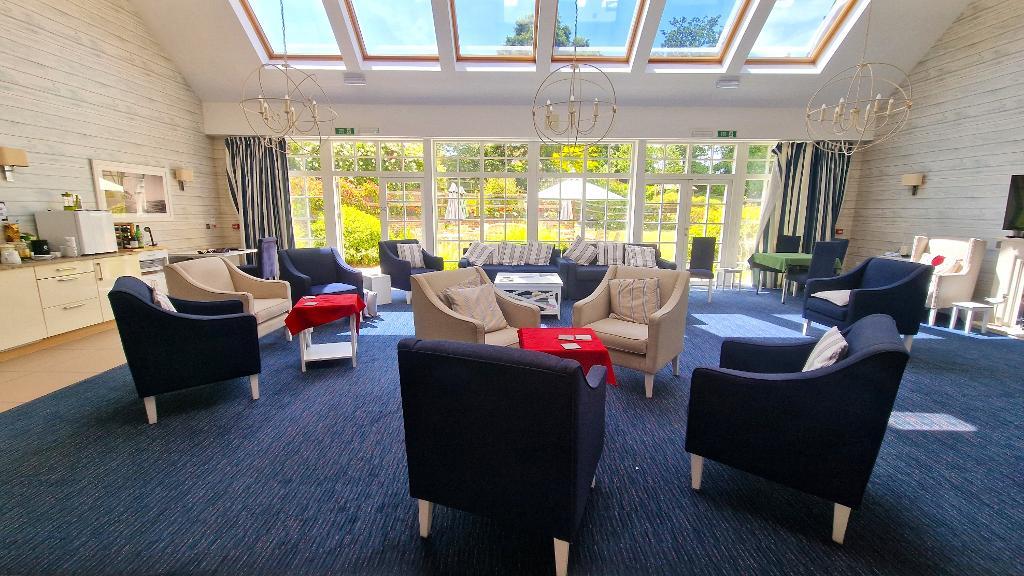 The building sits in beautifully landscaped gardens which have mature planting, lawned areas and various paved seating areas.