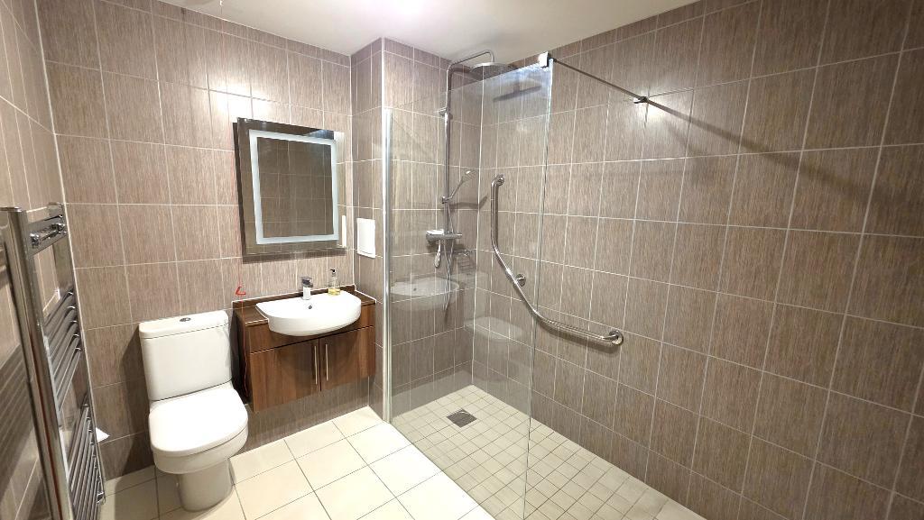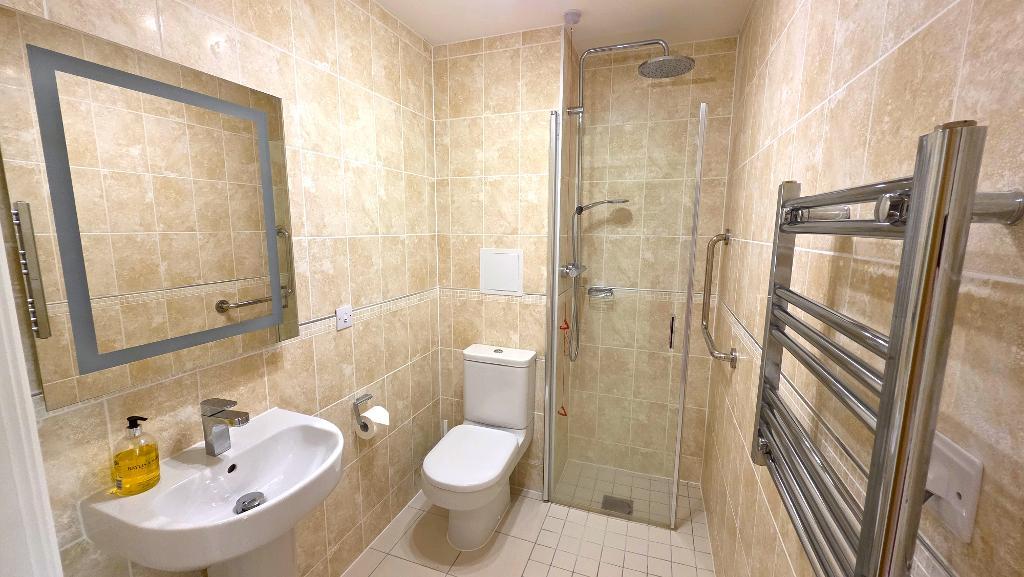 Shower Room - Fitted with a walk in shower cubicle with a glass screen, a wash basin and a WC. Fitted illuminated mirror, heated towel rail and extractor fan. Fully tiled walls and non-slip tiled floor with under floor heating.