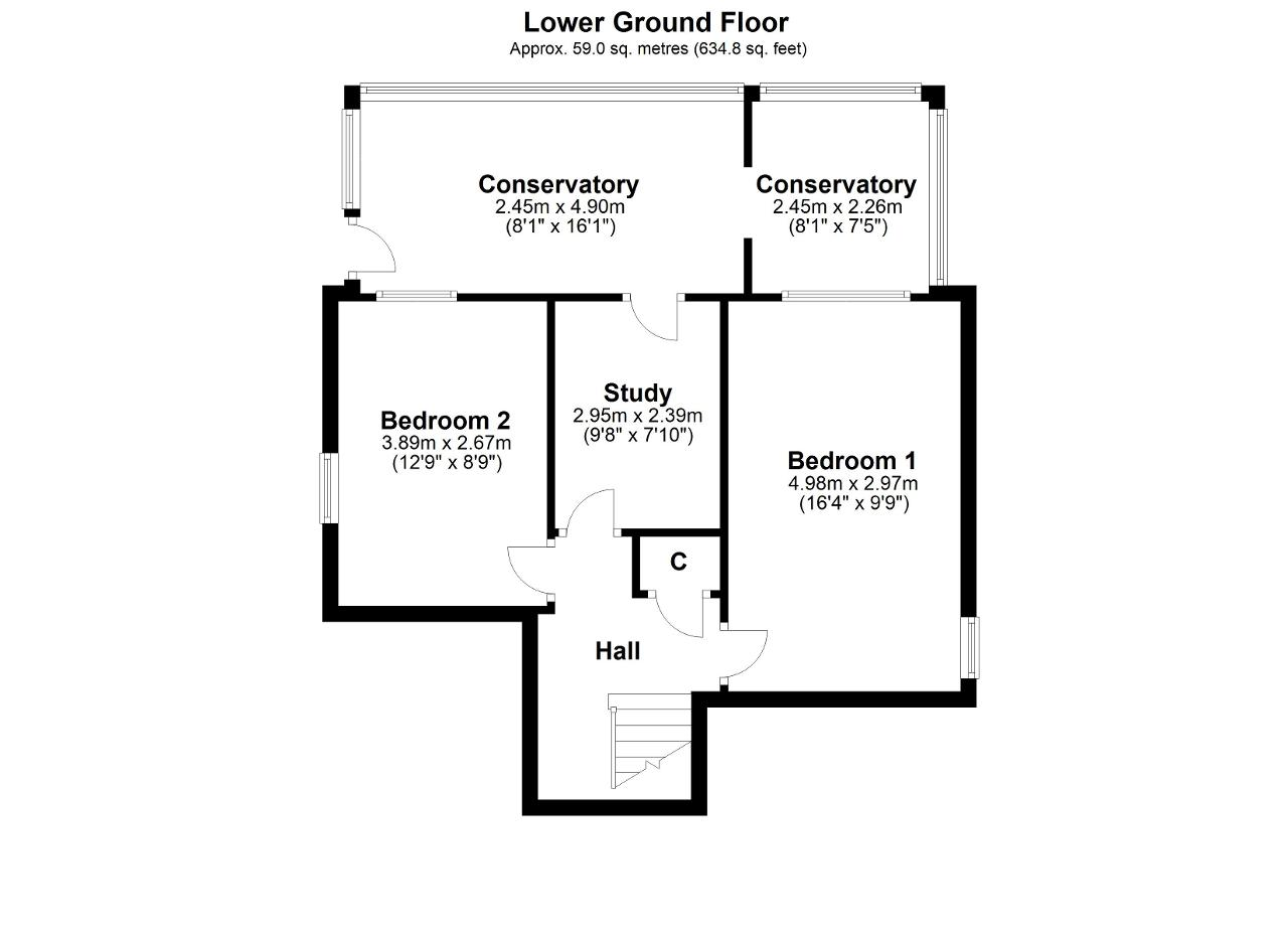Study - 9' 8'' x 7' 10'' (2.95m x 2.39m) Radiator, fitted carpet and double glazed door to the conservatory.