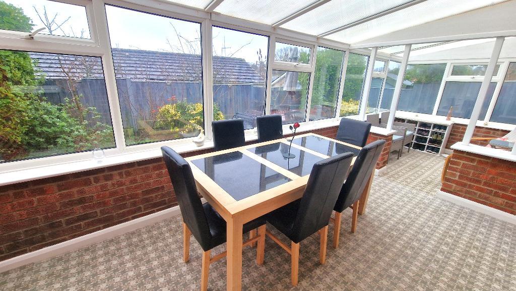 A bright and spacious double glazed conservatory with a dwarf brick wall and a polycarbonate roof. Windows to the sides and rear and a door giving access out to the garden. Fitted carpet.