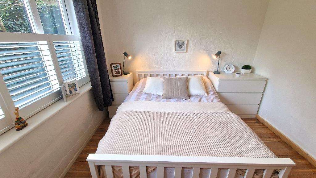 Bedroom - 9' 6'' x 9' 7'' (2.9m x 2.94m) A naturally bright double bedroom with a double glazed window to the front with fitted shutter blinds. Built in wardrobes and TV point. Door to:
